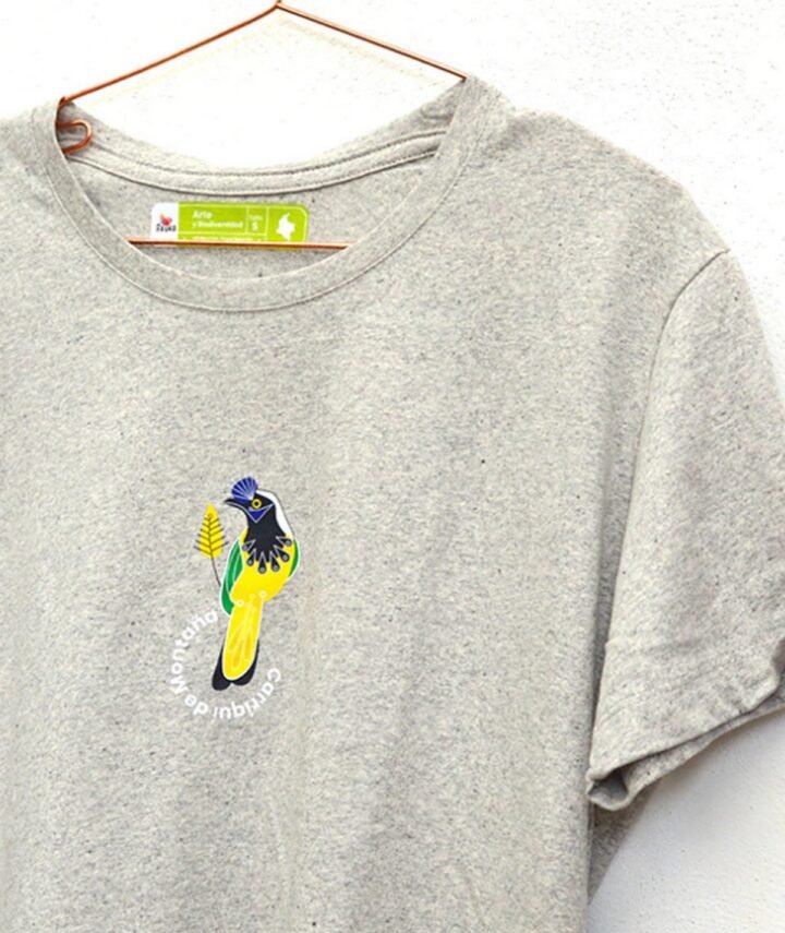 Lleva contigo un pedacito de Colombia con nuestra exclusiva pañoleta sostenible. Diseñada a partir de botellas plásticas recicladas, esta prenda única combina estilo, sostenibilidad y un tributo a la rana flecha dorada. Su estampado ilustrado captura la belleza y la diversidad de esta icónica especie colombiana.