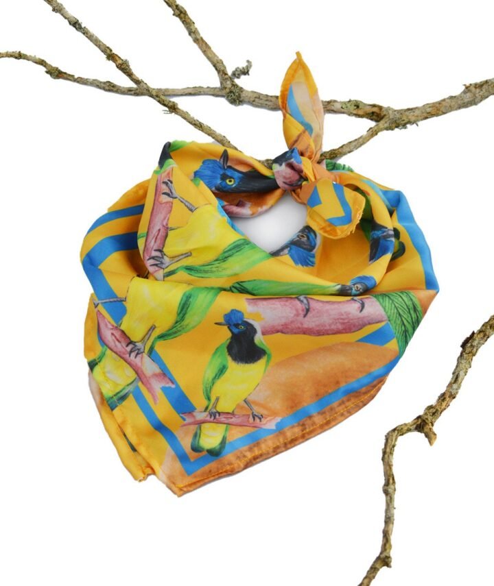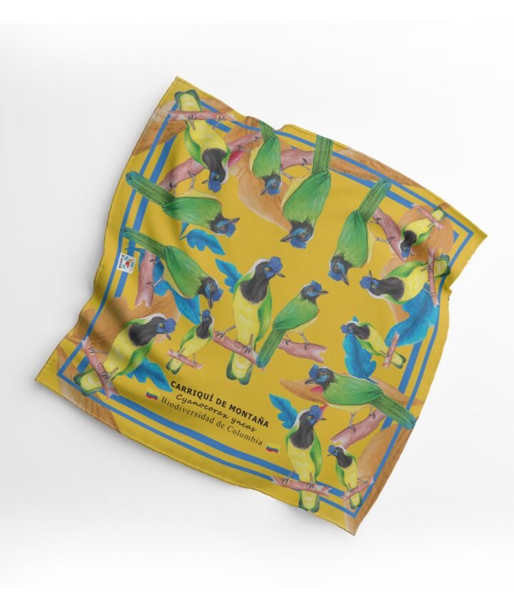 Añade un toque único y sostenible a tu estilo con nuestra pañoleta inspirada en el ave carriquí de montaña, un símbolo de la biodiversidad andina. Diseñada a partir de botellas plásticas recicladas, esta prenda refleja la conexión entre moda y conservación. Su estampado ilustrado captura la esencia de esta icónica especie en un diseño lleno de significado.