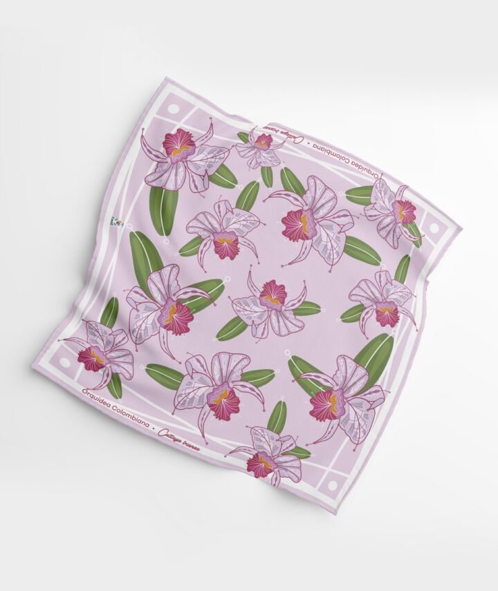 Lleva contigo un pedacito de Colombia con nuestra exclusiva pañoleta sostenible. Diseñada a partir de botellas plásticas recicladas, esta prenda única combina estilo, sostenibilidad y un tributo a la flor nacional: la orquídea. Su estampado ilustrado captura la belleza y la diversidad de esta icónica especie colombiana.